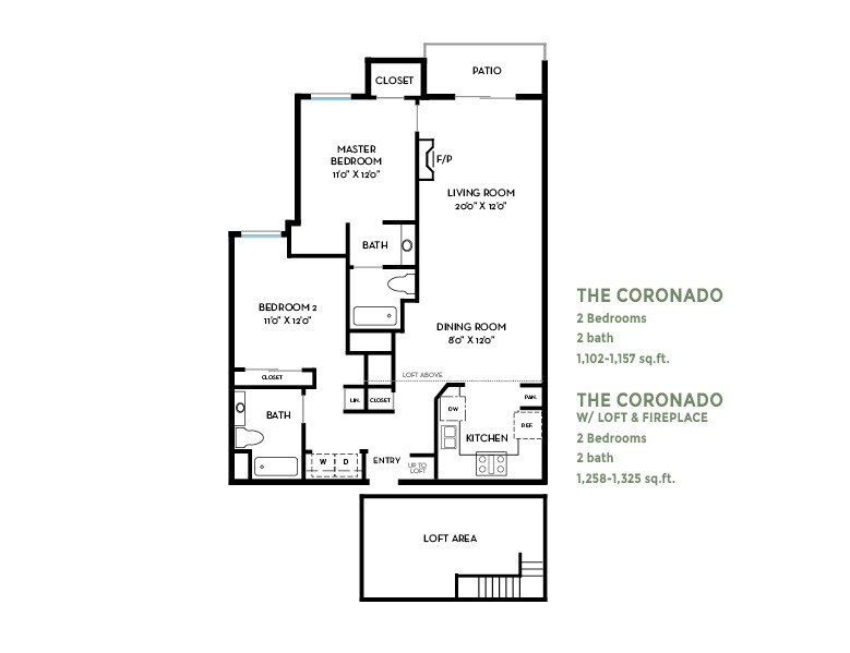 Modelo de apartamento: Coronado with Loft option$3,7352 Dormitorios, 2 Baños, 1252-1258 sq ftDisponible AhoraCoronado with Loft option - Plano 1 Lakeview with Den