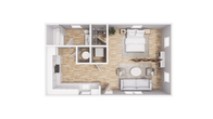 Modelo de apartamento: 0x1 - 375 sqft - S2Desde $999Estudio, 1 Baño, 375 sq ftDisponible March 14, 2026![]()
