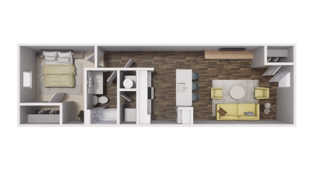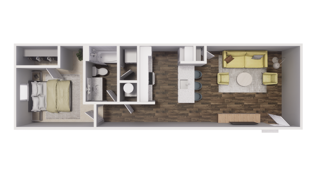 1 Dormitorio, 1 Baño, 682 pies²Precio Mensual TotalDisponible AhoraGalería del Modelo