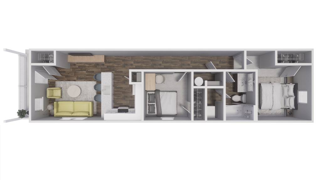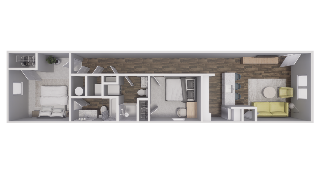 2 Dormitorios, 1 Baño, 900 pies²Disponible AhoraEl más grandeEsta opción tiene las unidades más grandes para este modeloGalería del Modelo