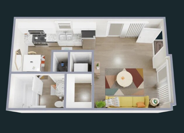 Estudio, 1 Baño, 360 pies²Disponible AhoraGalería del Modelo