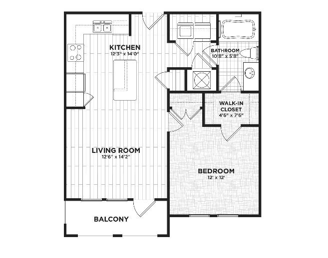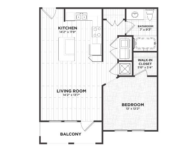 Modelo de apartamento: A31 Dormitorio, 1 Baño, 793 sq ftDisponible Ahora![]()