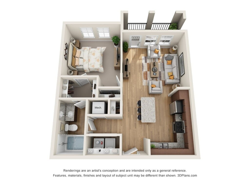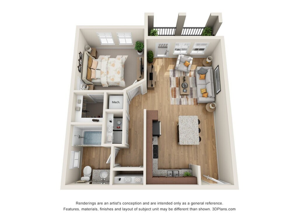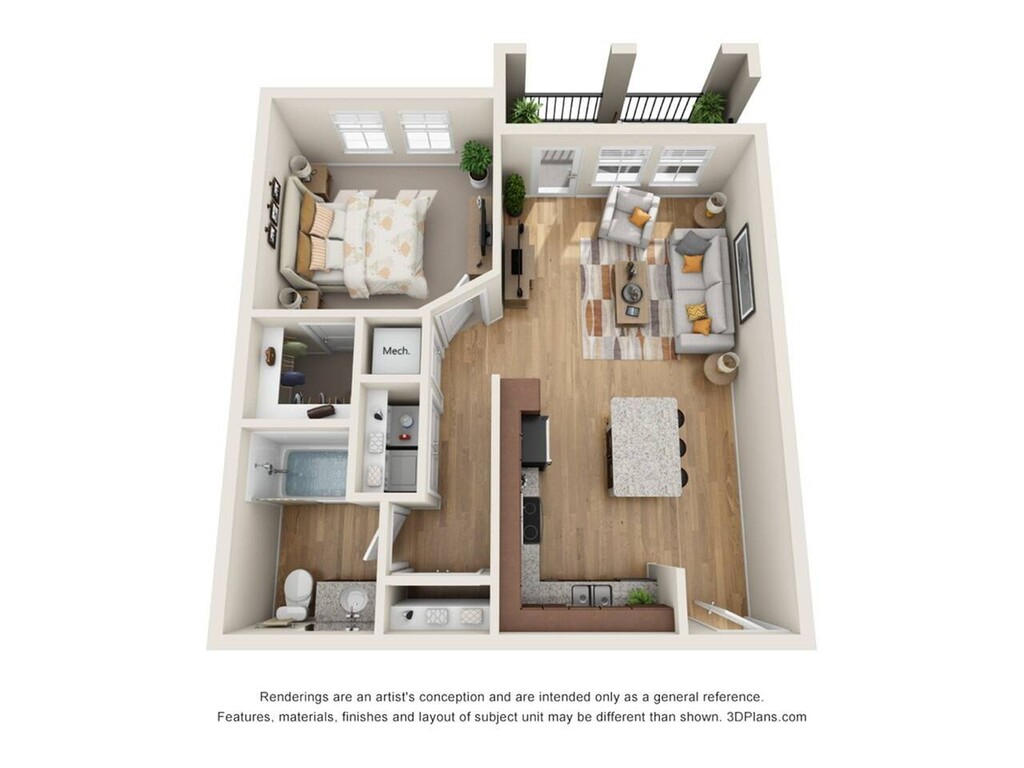 1 Dormitorio, 1 Baño, 793 pies²Disponible AhoraGalería del Modelo