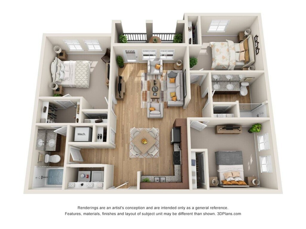 Modelo de apartamento: C13 Dormitorios, 2 Baños, 1286 sq ftNo Disponible![]()