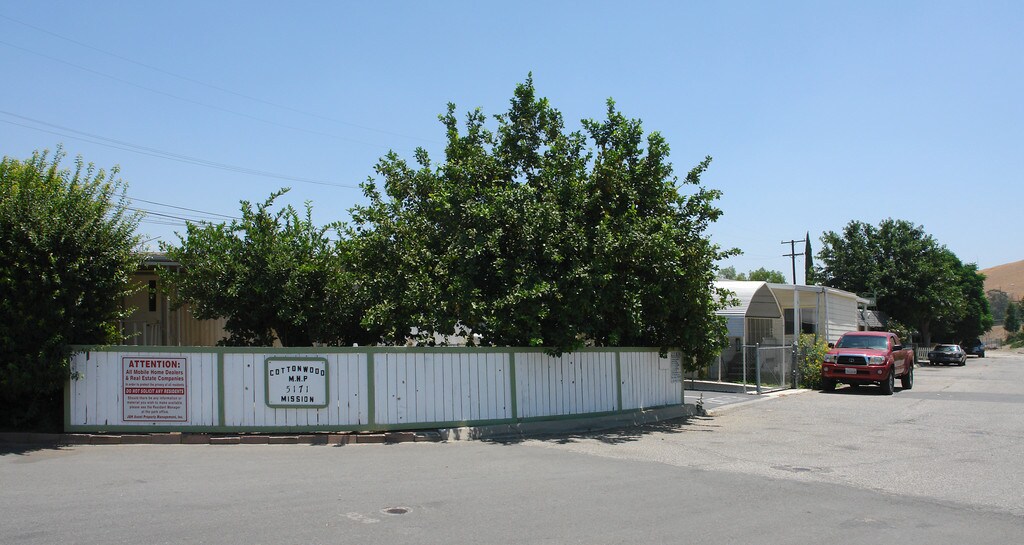 Cottonwood Mobile Home Park se encuentra en el Barrio Rubidoux y el código postal 92509 de Jurupa Valley, CA.