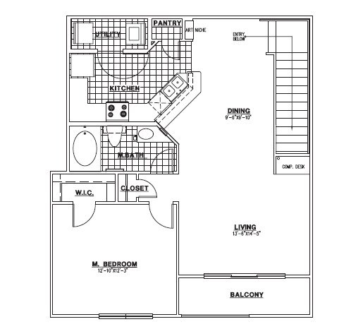 Modelo de apartamento: A31 Dormitorio, 1 Baño, 827 sq ftNo Disponible![]()