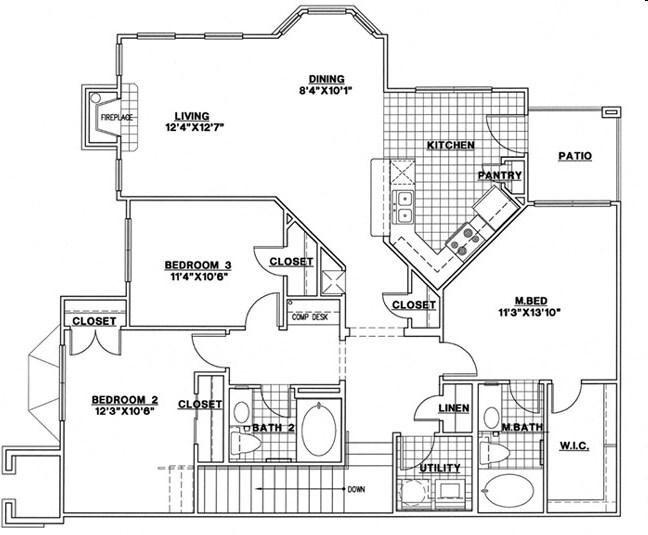 Modelo de apartamento: C1G3 Dormitorios, 2 Baños, 1513 sq ftNo Disponible![]()