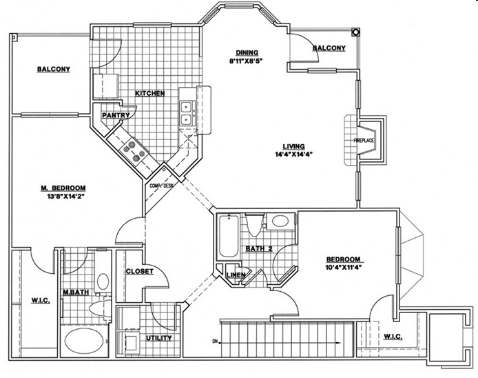 Modelo de apartamento: B32 Dormitorios, 2 Baños, 1361 sq ftNo Disponible![]()