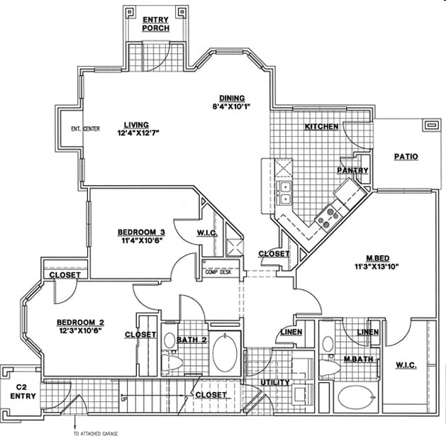 Modelo de apartamento: C2G3 Dormitorios, 2 Baños, 1596 sq ftNo Disponible![]()
