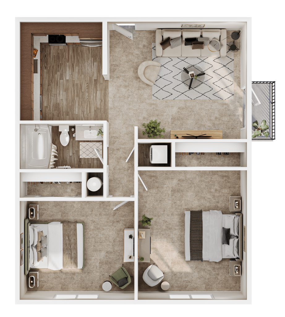 Modelo de apartamento: 1 Bed, 1 BathDesde $9251 Dormitorio, 1 Baño, 750 sq ftDisponible December 1, 2025![]()
