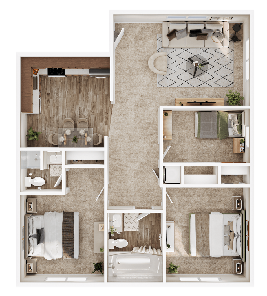 3 Dormitorios, 2 Baños, 950 pies²Galería del Modelo
