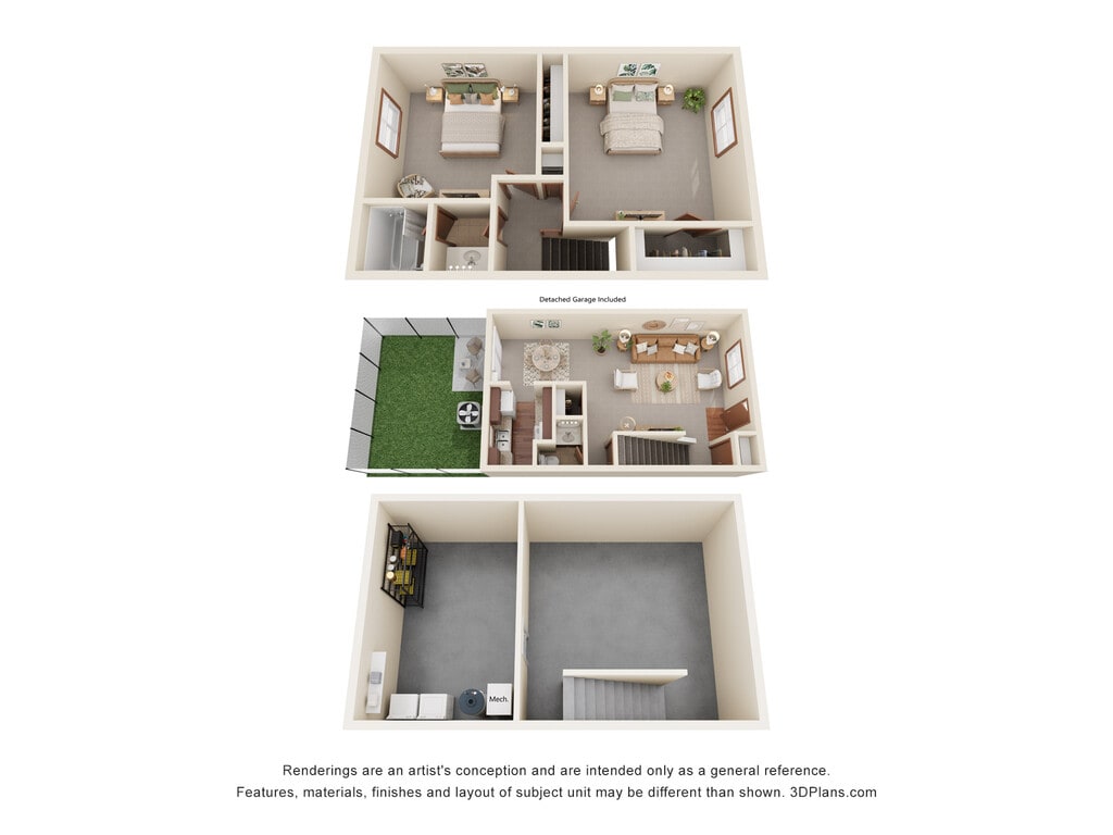 2 Dormitorios, 1.5 Baños, 1000 pies²Disponible AhoraGalería del Modelo