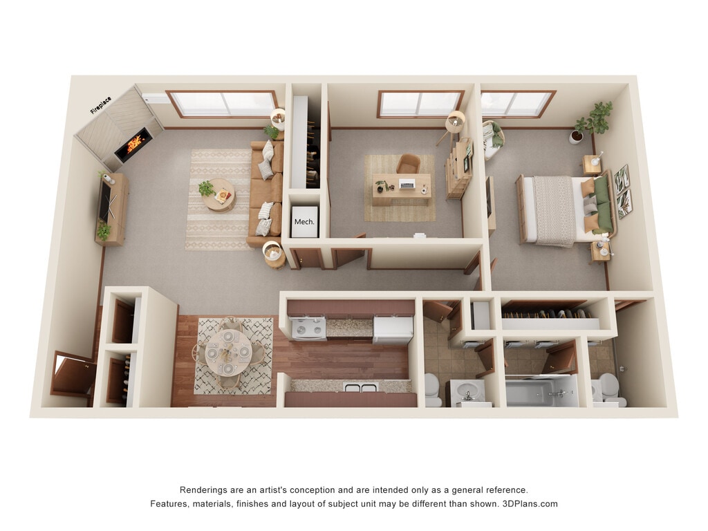 2 Dormitorios, 1 Baño, 800 pies²Disponible AhoraGalería del Modelo