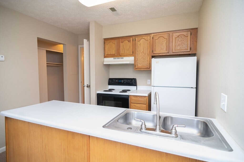April 13, 2013most have the white cabinet that are from the 70s that have been painted over 50 million times. needs new cabient those cabinets in the picture are nice dont count on that u will get an apt like that. bewareReseña de Apartments.com
