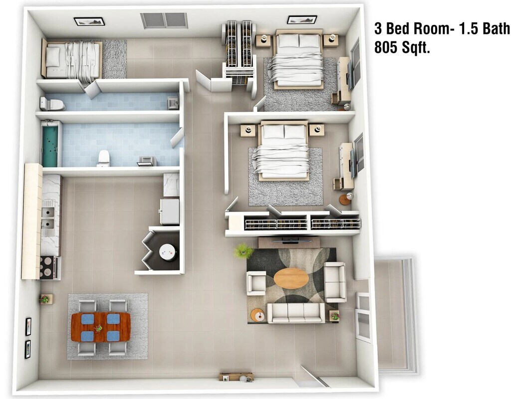 3 Dormitorios, 1.5 Baños, 805 pies²Disponible AhoraGalería del Modelo