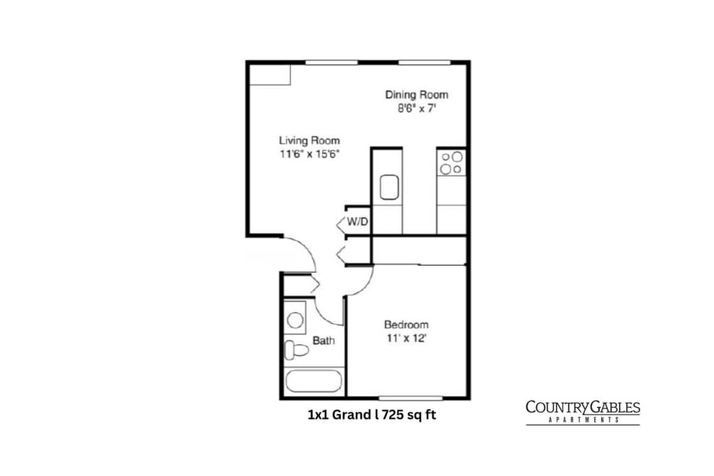 1 Dormitorio, 1 Baño, 725 pies²El más grandeEsta opción tiene las unidades más grandes para este modeloGalería del Modelo