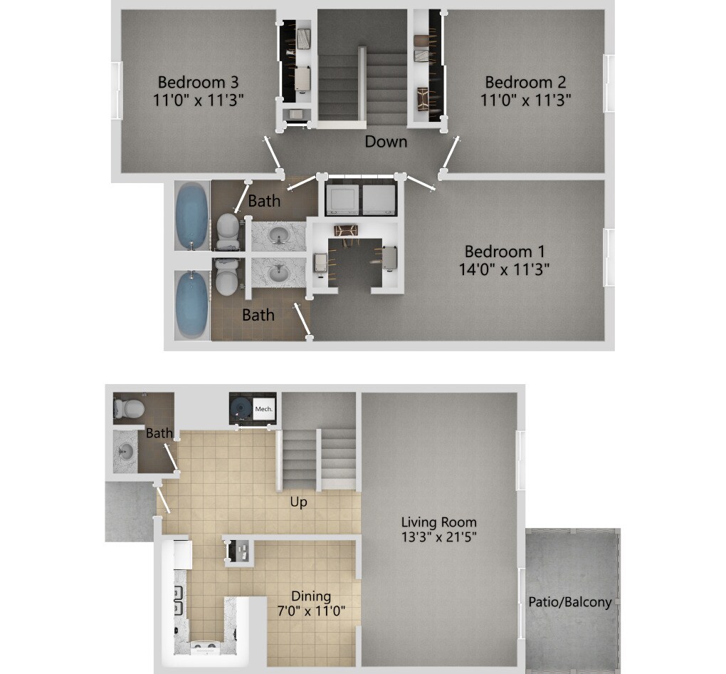 Modelo de apartamento: The Emperor$1,6503 Dormitorios, 2.5 Baños, 1520 sq ftDisponible Ahora![]()