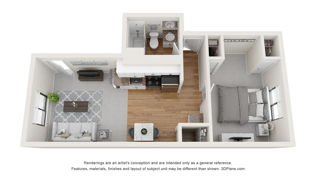 1 Dormitorio, 1 Baño, 525 pies²Disponible AhoraGalería del Modelo