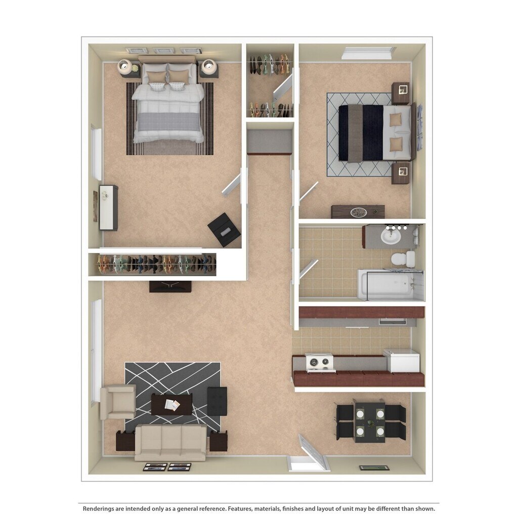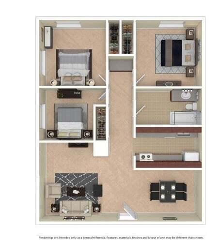 2 Dormitorios, 1 Baño, 739 pies²Galería del Modelo