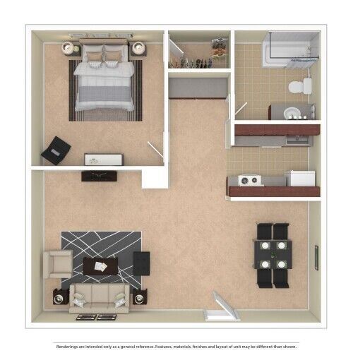 1 Dormitorio, 1 Baño, 585 pies²Galería del Modelo