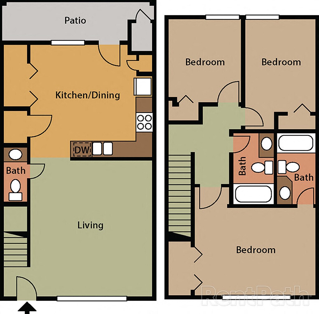Modelo de apartamento: 3 BR, 2.5 BTH Townhome$1,4023 Dormitorios, 2.5 Baños, 1196 sq ftDisponible Ahora![]()