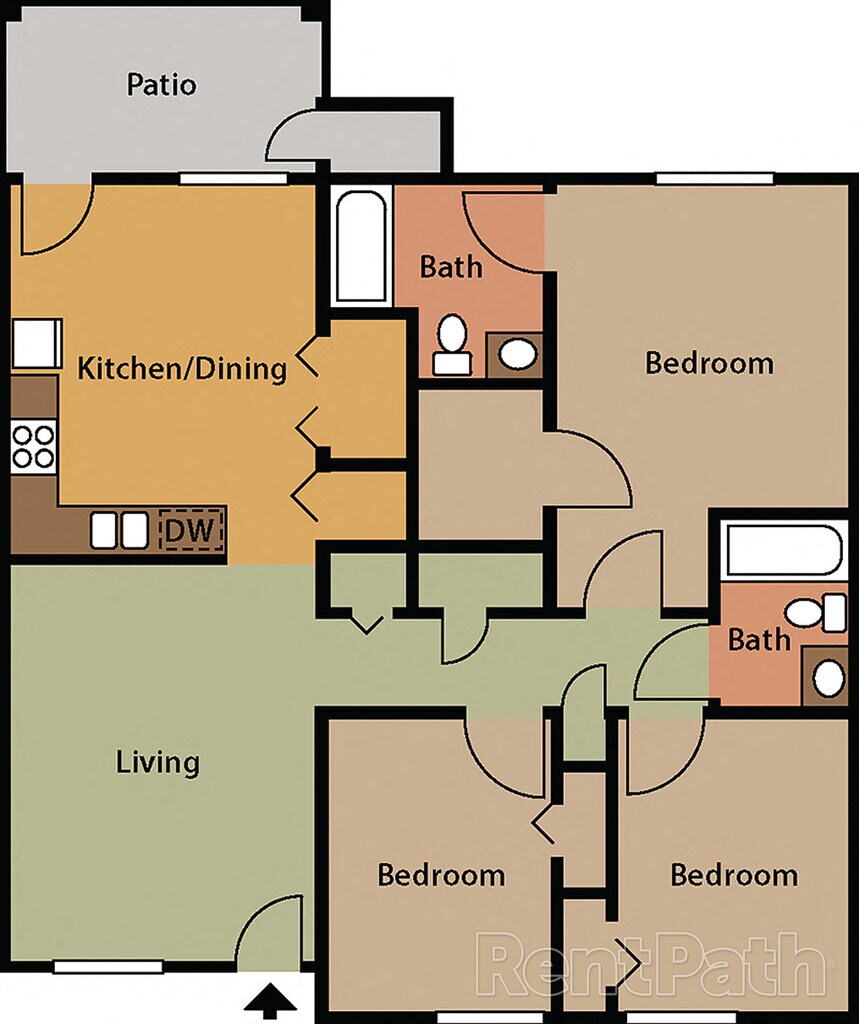 Country Place ofrece apartamentos de 3 Dormitorios y 1,106–1,196 pies cuadrados. Aquí está el precio actual y la disponibilidad:
