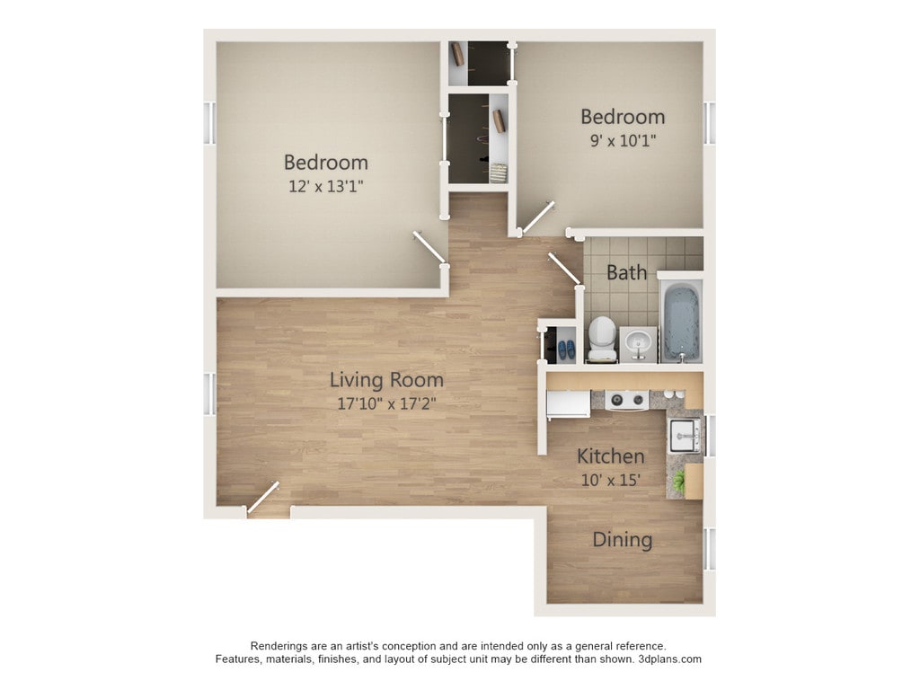 1 Dormitorio, 1 Baño, 650 pies²Disponible AhoraGalería del Modelo