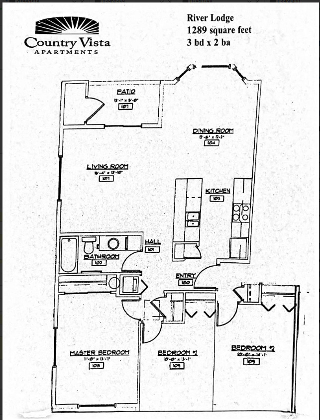 Modelo de apartamento: River LodgeDesde $1,8953 Dormitorios, 2 Baños, 1289 sq ftNo DisponibleRiver Lodge - Plano 1 The Sportsman Suite