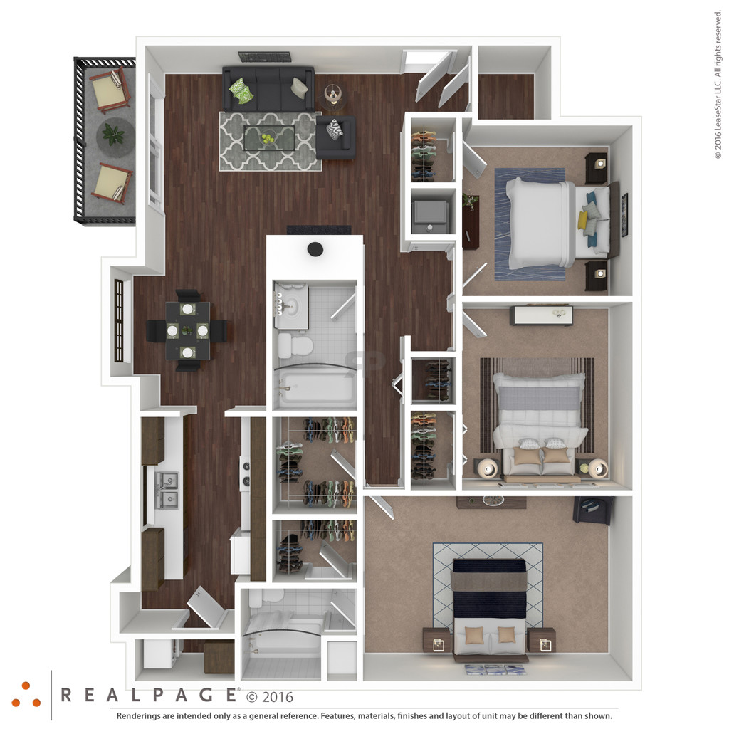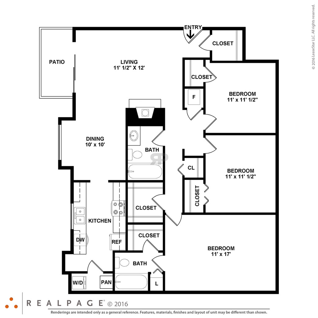 Modelo de apartamento: 3A3 Dormitorios, 2 Baños, 1191 sq ftNo Disponible![]()