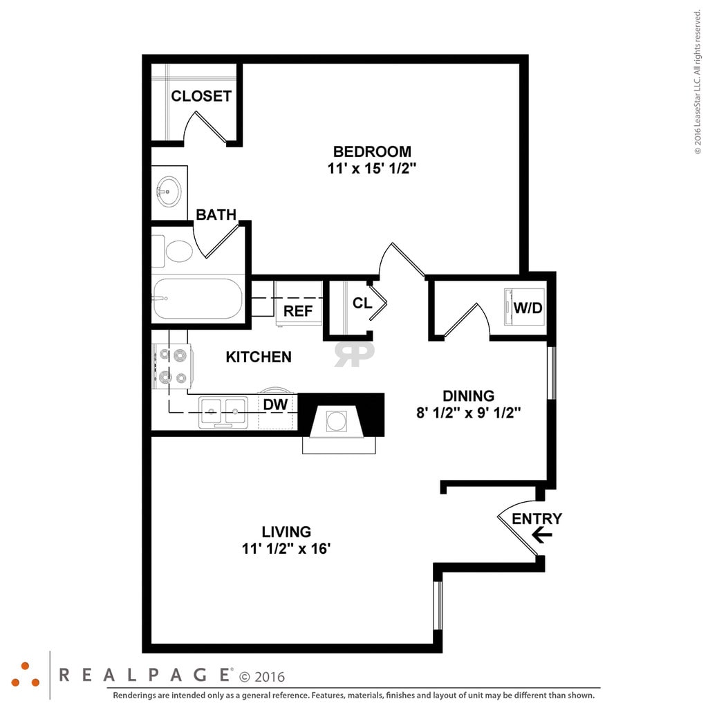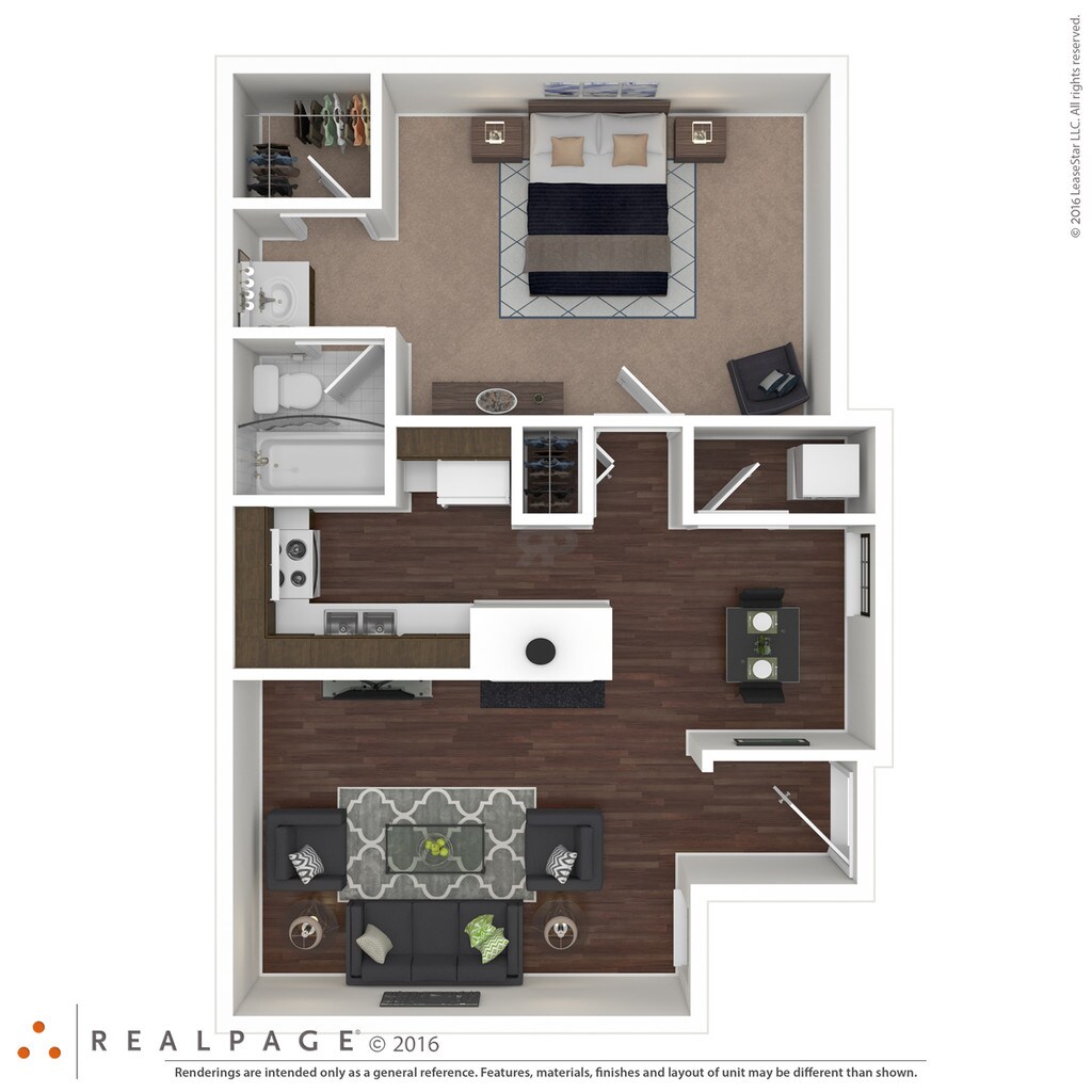 Modelo de apartamento: 1A1 Dormitorio, 1 Baño, 661 sq ftNo Disponible![]()