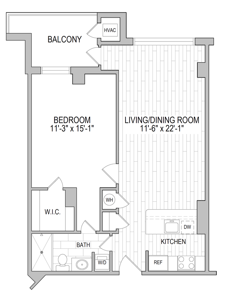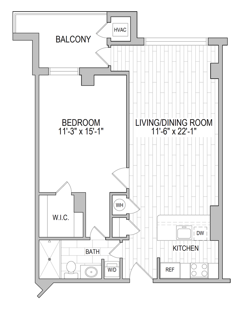 1 Dormitorio, 1 Baño, 700-750 pies²Disponible AhoraGalería del Modelo