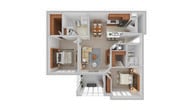Modelo de apartamento: A2Desde $1,4431 Dormitorio, 1 Baño, 857 sq ftDisponible Ahora![]()
