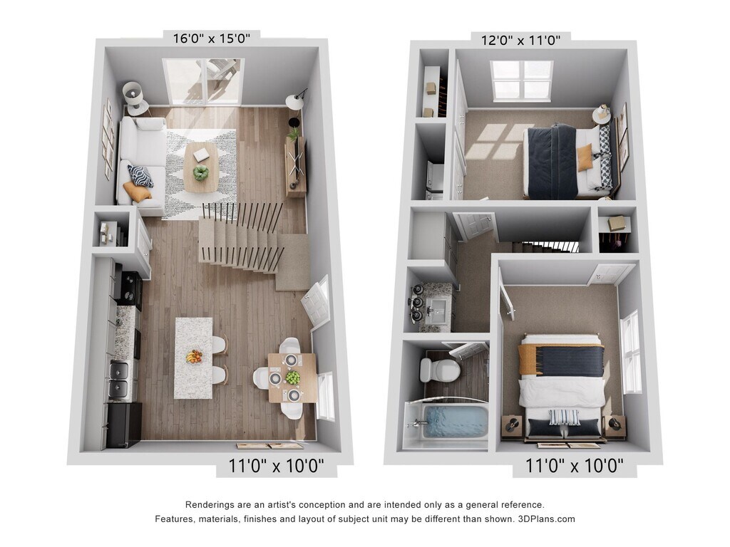 2 Dormitorios, 1 Baño, 800 pies²Disponible AhoraGalería del Modelo