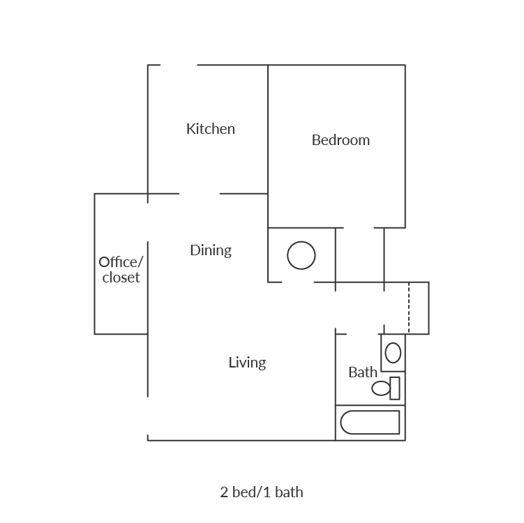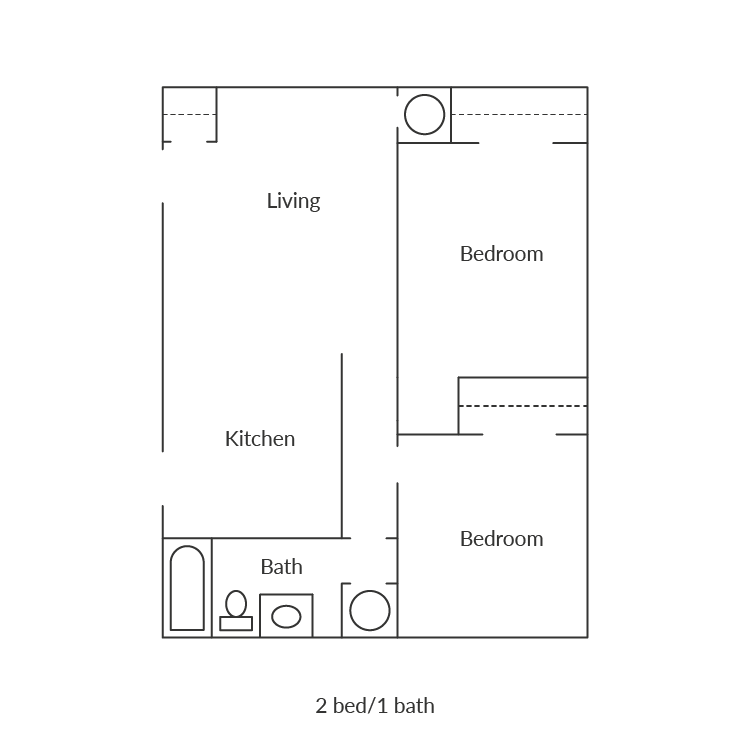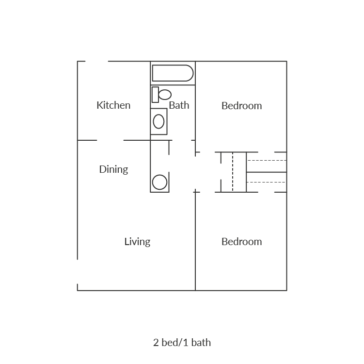 2 Dormitorios, 1 Baño, 750 pies²El más grandeEsta opción tiene las unidades más grandes para este modeloGalería del Modelo
