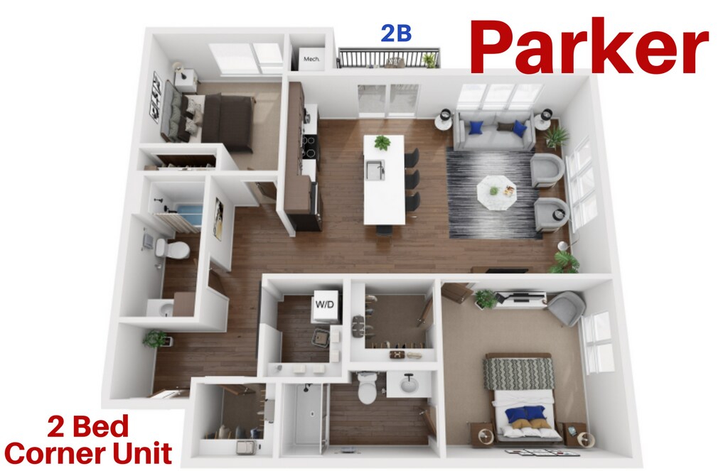 Corliss | 2 Bedroom, 2 Bathroom Apartment - Plano 12 Parker | 2 Bedroom, 2 Bathroom, Corner Unit, Ap...