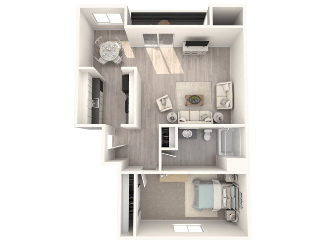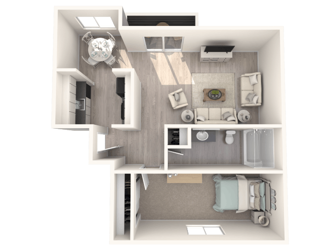 1 Dormitorio, 1 Baño, 743 pies²Disponible AhoraGalería del Modelo