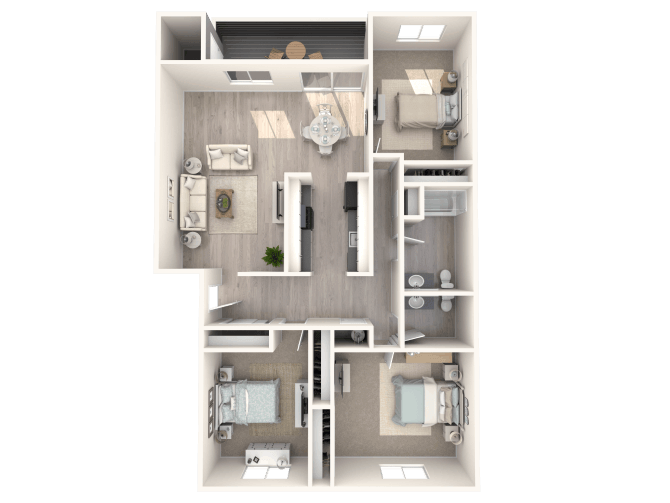 Modelo de apartamento: 3A3 Dormitorios, 1.5 Baños, 1157 sq ftDisponible December 12, 2025![]()