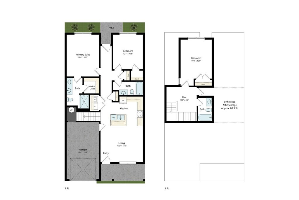 2 Dormitorios, 2 Baños, 1020 pies²Disponible AhoraGalería del Modelo