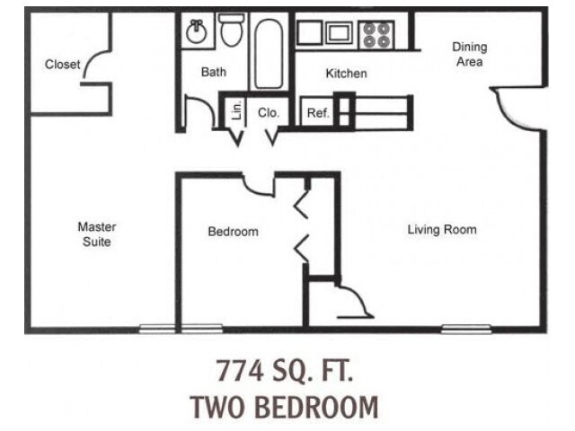 2 Dormitorios, 1 Baño, 774 pies²Disponible AhoraGalería del Modelo