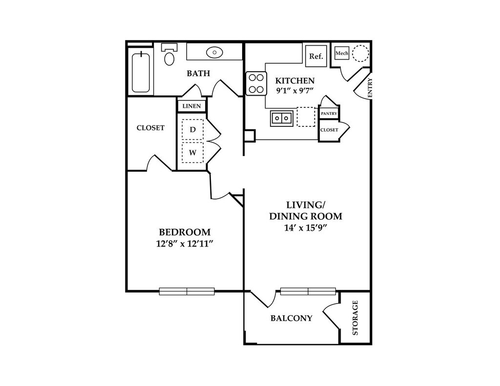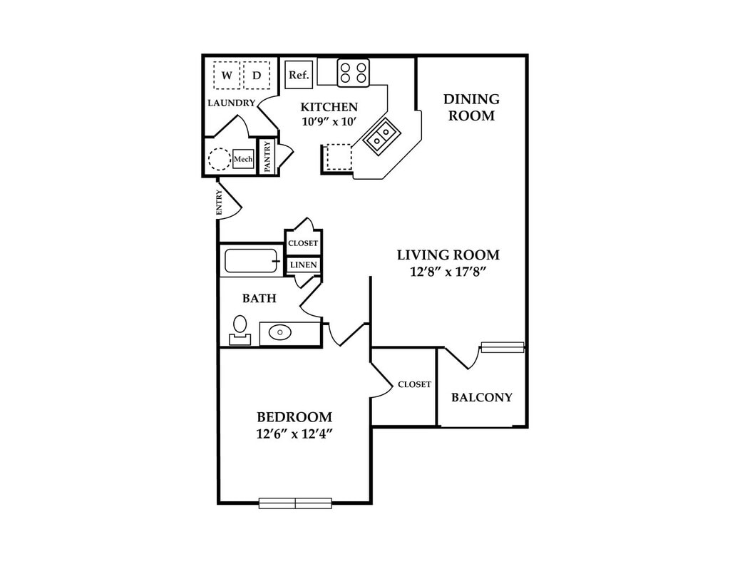 Modelo de apartamento: A1Desde $1,0251 Dormitorio, 1 Baño, 748 sq ftDisponible Ahora![]()