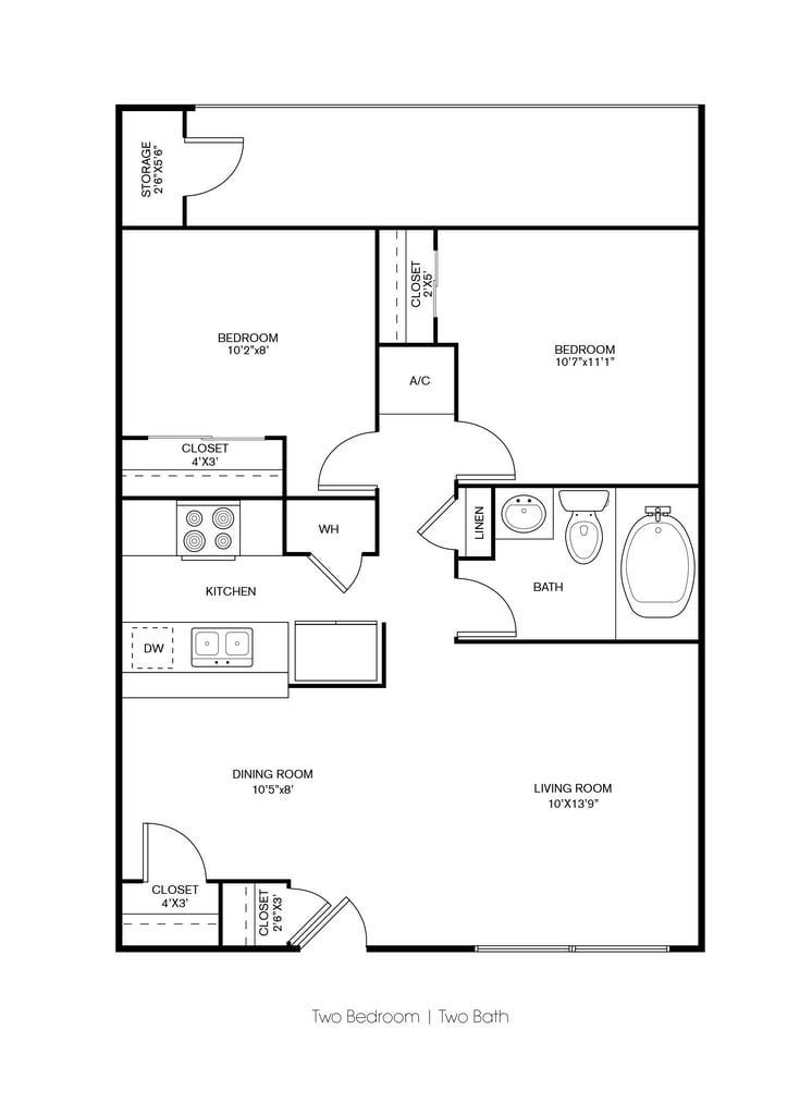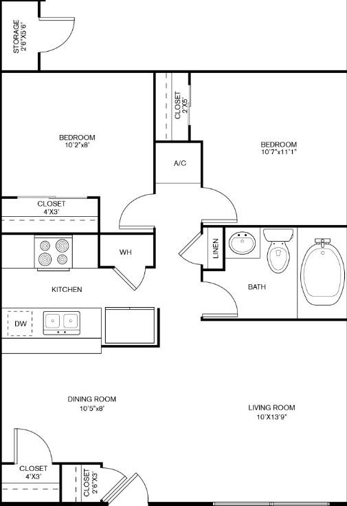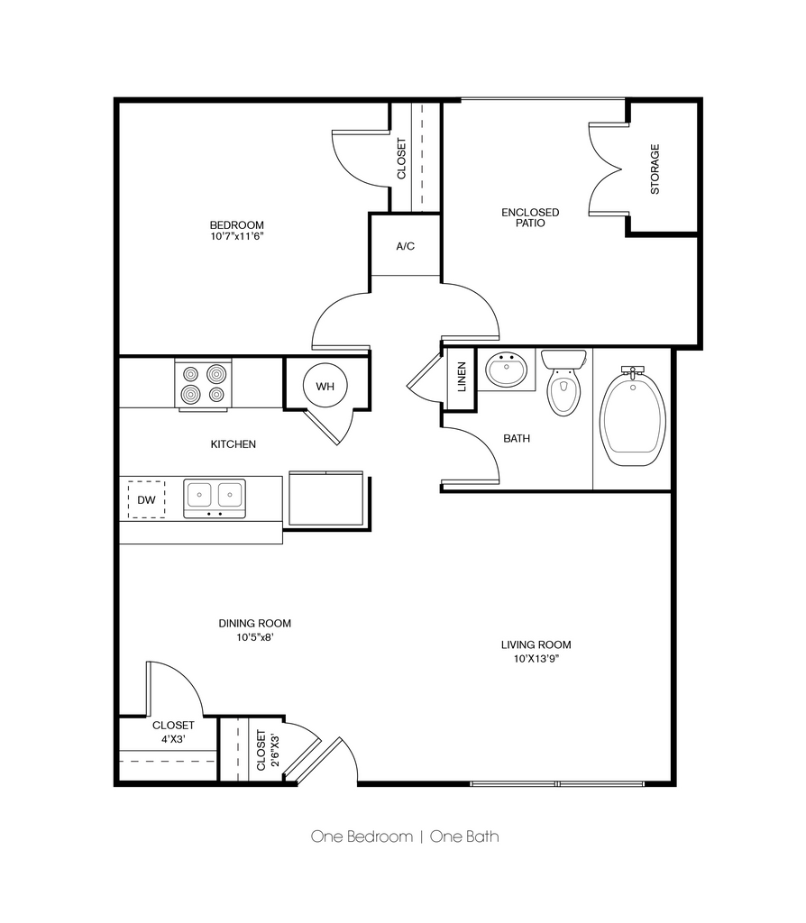 A1 - Plano 1 Unidad de apartamento: 104Modelo de apartamento: A11 Dormitorio, 1 Baño, 670 sq ftDisponible November 15, 20252 Dormitorios