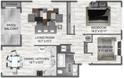 1 Dormitorio, 1 Baño, 824 pies²Galería del Modelo