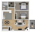 Modelo de apartamento: 2 Bed 1 Bath$1,6202 Dormitorios, 1 Baño, 900 sq ftNo Disponible2 Bed 1 Bath - Plano 1