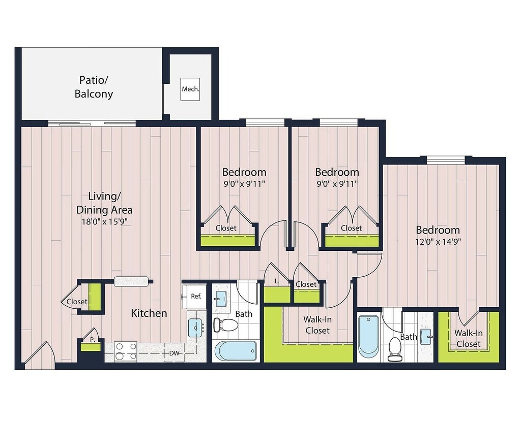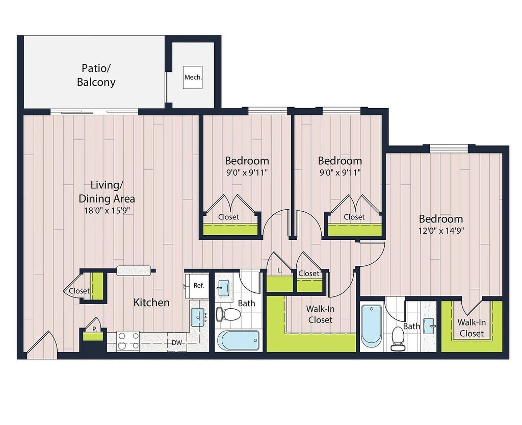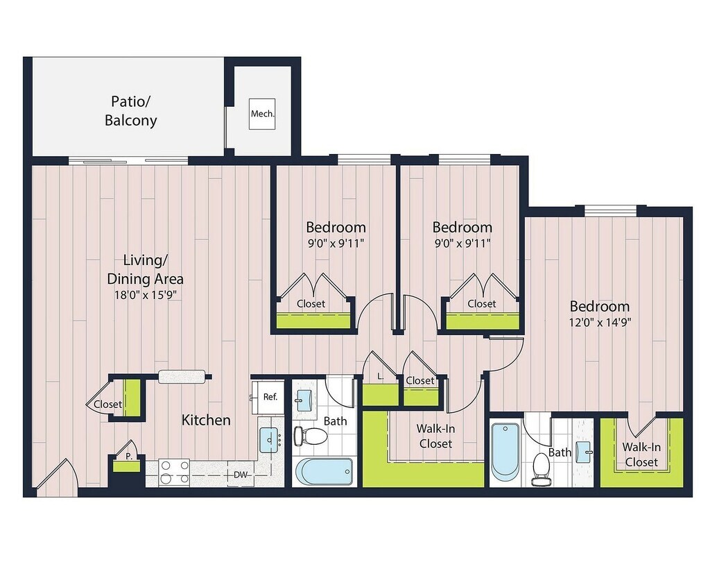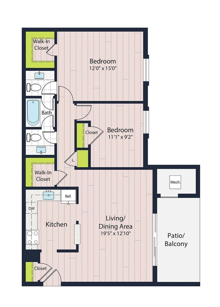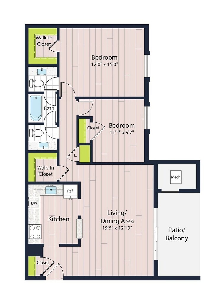 Modelo de apartamento: B2-602 Dormitorios, 2 Baños, 981 sq ftDisponible Ahora![]()