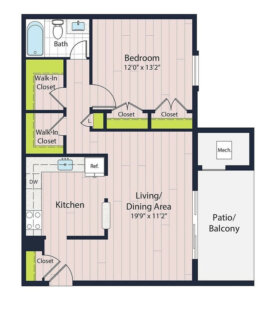 1 Dormitorio, 1 Baño, 755 pies²Disponible AhoraGalería del Modelo