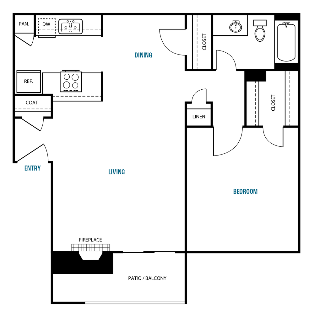 Modelo de apartamento: One Bedroom/One Bath1 Dormitorio, 1 Baño, 630 sq ftDisponible Ahora![]()