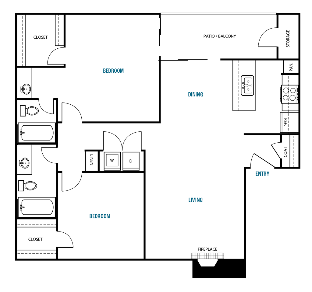 Modelo de apartamento: Two Bedroom/Two Bath2 Dormitorios, 2 Baños, 810 sq ftDisponible Ahora![]()