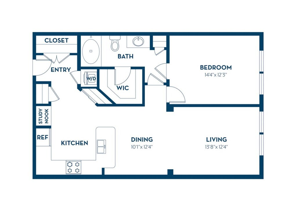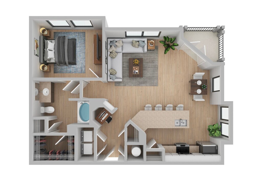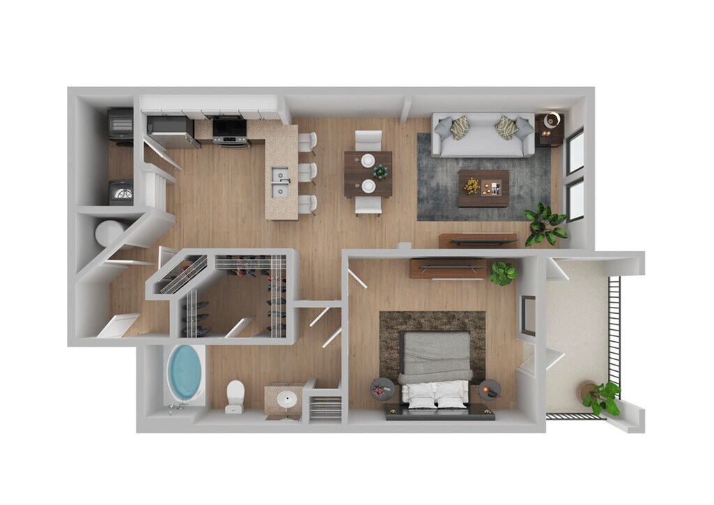 1 Dormitorio, 1 Baño, 890 pies²Disponible AhoraGalería del Modelo
