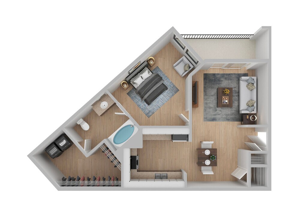 Birch | Renovated - Plano 2 Unidad de apartamento: 5448-5448-106Modelo de apartamento: Birch | RenovatedDesde $1,3271 Dormitorio, 1 Baño, 745 sq ftDisponible AhoraQuartz | Renovated