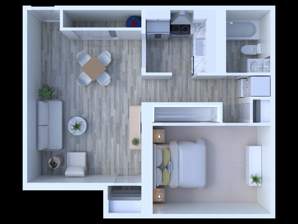 1 Dormitorio, 1 Baño, 500-600 pies²Disponible AhoraGalería del Modelo
